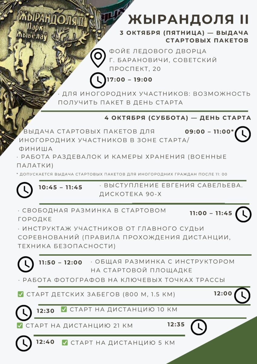 07:30-09:00 – Выдача стартавых пакетаў (вул. Мітрапаліта Філарэта, 2/2)